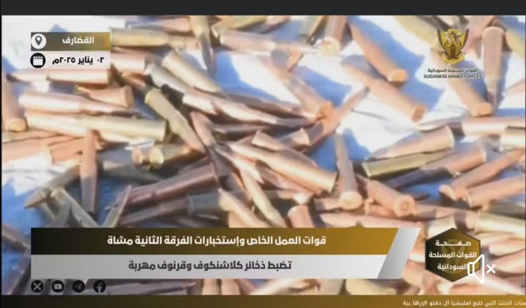 تمكنت شعبة الاستخبارات بقيادة الفرقة الثانية مشاة بالقضارف من ضبط أكثر من (٧٠) الف طلقة من ذخائر الكلاشنكوف والقرنوف محملة على متن “2” لوري .