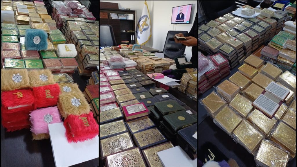 وأفاد جهاز الحرس البلدي في سرت بأن عدد المصاحف المصادرة بلغ 1061، موضحا أن القرار المصادرة جاء بعد مراسلة من وزير الأوقاف كشف فيها “وجود مصاحف صغيرة الحجم تباع في محلات العطارة وتستعمل لغرض الزينة والتعليق بالمركبات”.