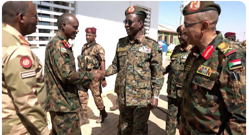 تفقد عضو مجلس السيادة، نائب القائد العام، الفريق أول ركن شمس الدين كباشي، منطقة الكدرو العسكرية، في إطار زيارته التفقدية للفرق والوحدات العسكرية، يرافقه عضو مجلس السيادة، مساعد القائد العام، الفريق أول ركن ياسر العطا.