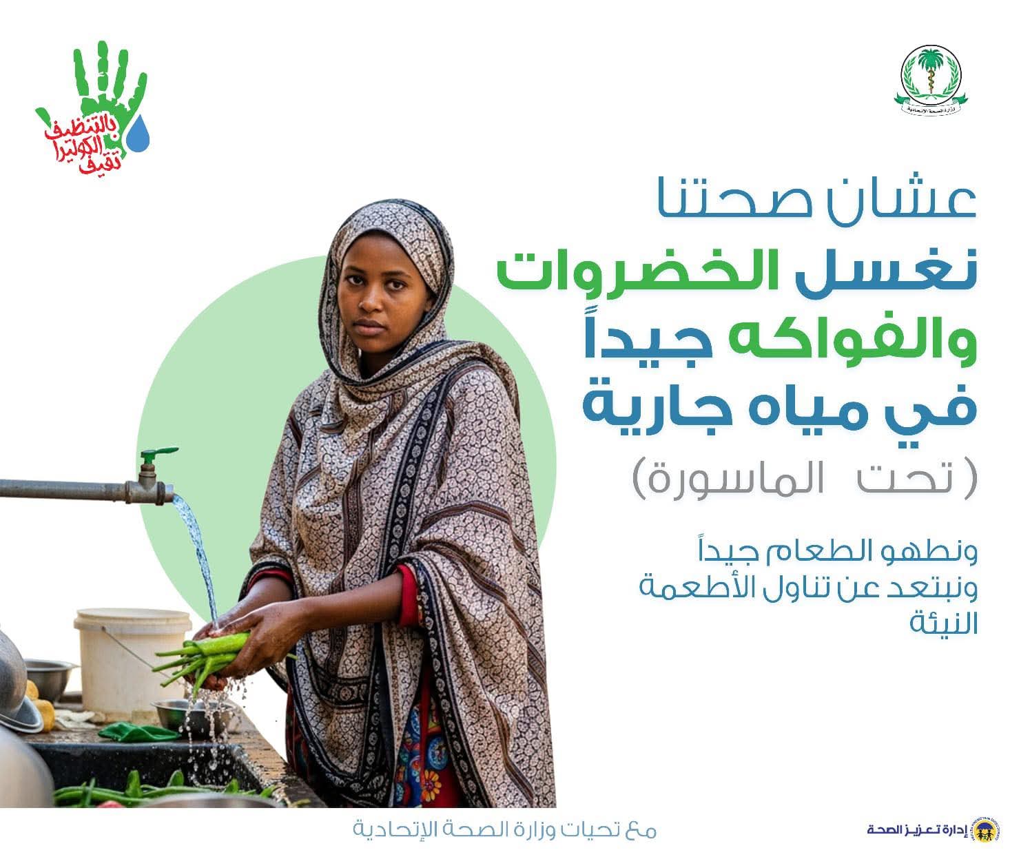 🍅 اغسل الخضروات والفواكه بمويه جارية (تحت الماسورة).