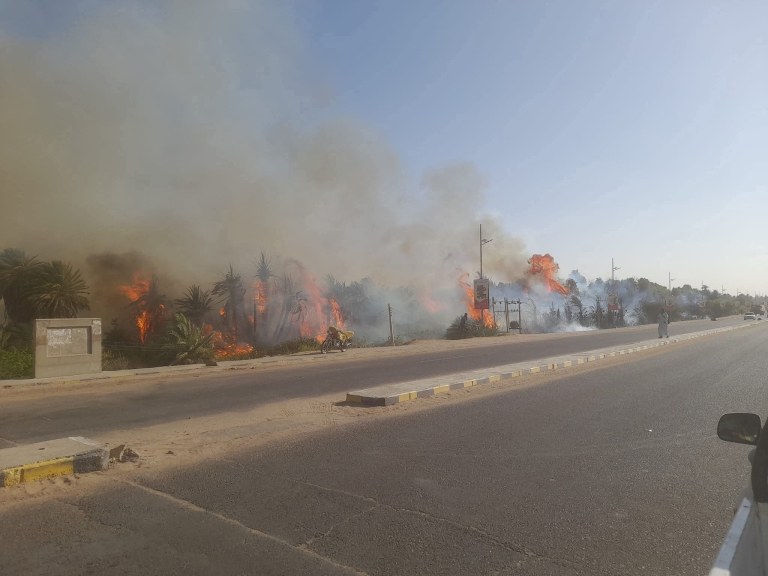 حريق كبير قرب كبري السليم بدنقلا