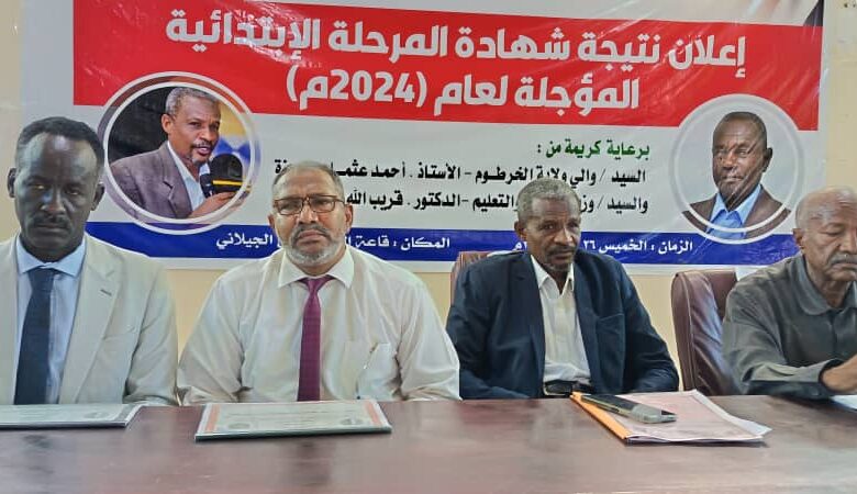 أعلنت وزارة التربية والتعليم بولاية الخرطوم، اليوم، نتيجة امتحانات شهادة المرحلة الابتدائية المؤجلة من العام 2024، وذلك خلال احتفال رسمي بمقر الوزارة بمدينة بحري، بحضور والي الخرطوم الأستاذ أحمد عثمان حمزة وعدد من أعضاء حكومة الولاية وقيادات التعليم.