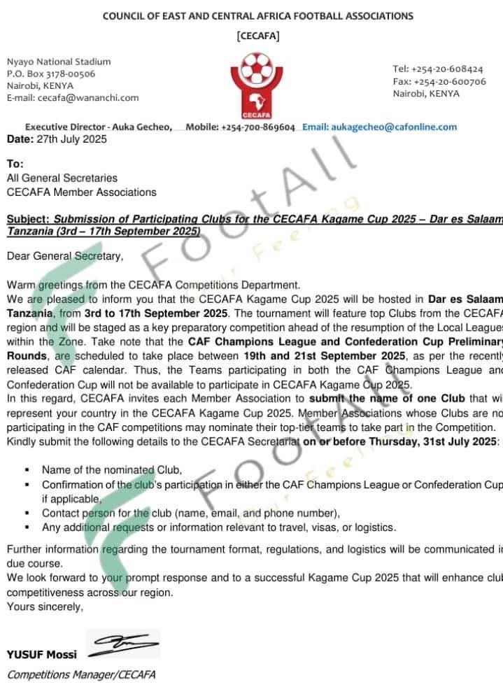 في خطوة مفاجئة، أصدر اتحاد سيكافا قرارًا يقضي بمنع الأندية المشاركة في البطولات الأفريقية من خوض منافسات بطولة سيكافا المقبلة، المقرر إقامتها في تنزانيا.