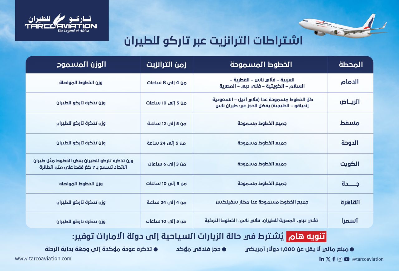 بهذا التحديث، تعزز تاركو للطيران حضورها في شبكة الترانزيت الإقليمية، وتمنح المسافرين من وإلى السودان خيارات أوسع وأكثر مرونة، خصوصاً مع إدراج الدمام كوجهة جديدة بعد طول انتظار.
