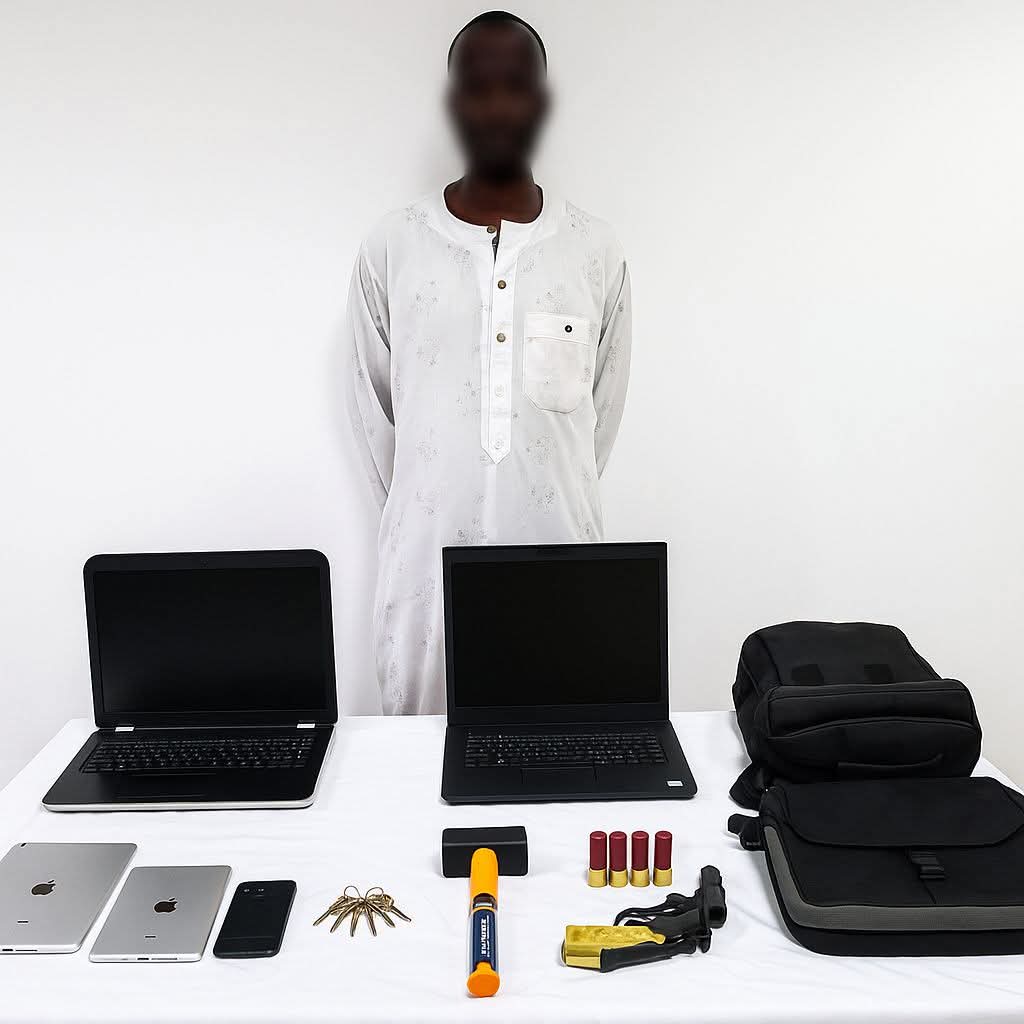 وأضافت الوزارة أنه تم تحديد وضبط مرتكب الحادث، وهو عاطل يحمل جنسية إحدى الدول، وبحوزته فرد خرطوش وعدد من الطلقات، إلى جانب عدد من المسروقات منها جهازا لاب توب، هاتف محمول، جهازان لوحيان “آي باد”، وحقيبتان، وهي الأدوات المستخدمة في ارتكاب الواقعة.