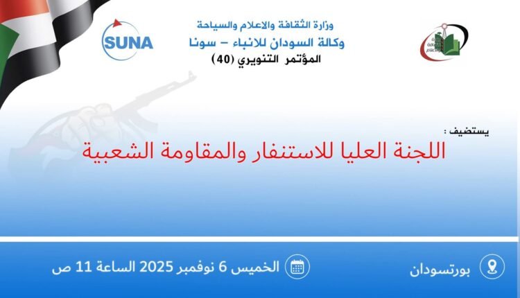 تنظم وزارة الثقافة والإعلام والسياحة، عبر وكالة السودان للأنباء، المؤتمر التنويري رقم (40) غدًا الخميس الموافق 6 نوفمبر 2025، في تمام الحادية عشرة صباحًا.