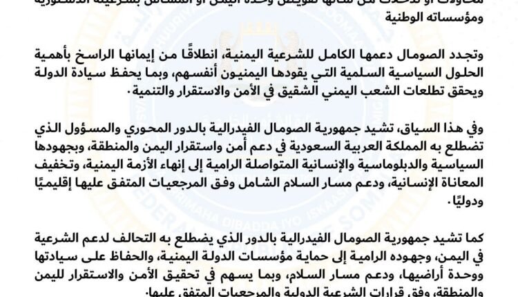 تغريدة وزارة الخارجية الصومالية علي منصة (X) حول دعم سيادة اليمن ووحدته واستقراره بوصفها موقفًا دبلوماسياً، بدت كرسالة سياسية محسوبة في توقيت إقليمي شديد الحساسية، حيث تتقاطع ملفات ، السودان،اليمن، الصومال ، السعودية ، مصر ، القرن الإفريقي، والبحر الأحمر في نقطة تهديد واحدة، وإن اختلفت ساحات الاشتباك وأدواته.
