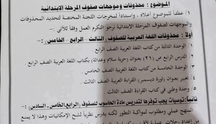 وأشار التعميم إلى أن التعديلات شملت حذف الوحدة الثالثة من كتاب اللغة العربية للصف الرابع، بالإضافة إلى إزالة درس بعنوان «حرية، سلام، وعدالة» الوارد في الصفحة 21 من الكتاب نفسه. كما تم حذف الوحدة الخامسة من كتاب اللغة العربية للصف الخامس.