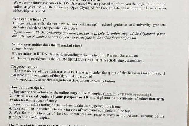 أعلنت سفارة جمهورية السودان في موسكو، عن فتح باب التسجيل للمنح الدراسية التي تنظمها جامعة الصداقة للطلاب الأجانب لمرحلتي البكالوريوس والماجستير في التخصصات المختلفة خلال الفترة من يناير وحتى أبريل 2026.