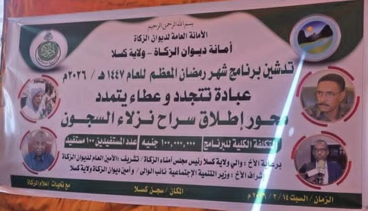 أطلقت السلطات بولاية كسلا عدد 100 من نزلاء السجون الغارمين ضمن برامج ديوان الزكاة لشهر رمضان المعظم بكلفة بلغت 100 مليون جنيه.