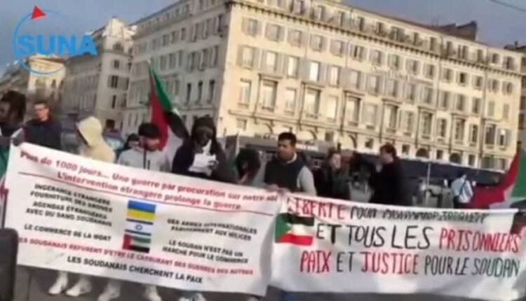 نظم سودانيون مقيمون في دول أوروبية وقفة احتجاجية في مدينة مارسيليا الفرنسية بمناسبة مرور 1000 يوم على بداية الحرب في السودان، واحتجاجاً على صمت المجتمع الدولي إزاء ممارسات وانتهاكات مليشيا الدعم السريع المتمردة في حق المواطنين.
