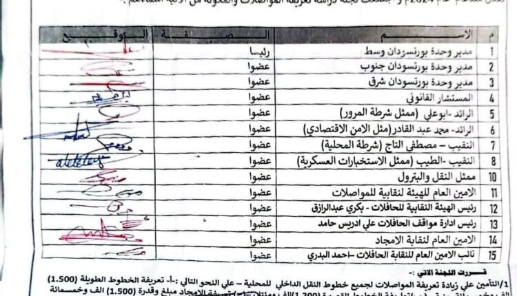 أصدرت لجنة دراسة تعرفة المواصلات بمحلية بورتسودان قرارًا بزيادة تعرفة المواصلات لجميع خطوط النقل الداخلي، وذلك عقب اجتماعها لمراجعة التعرفة في ظل المتغيرات الاقتصادية الراهنة.