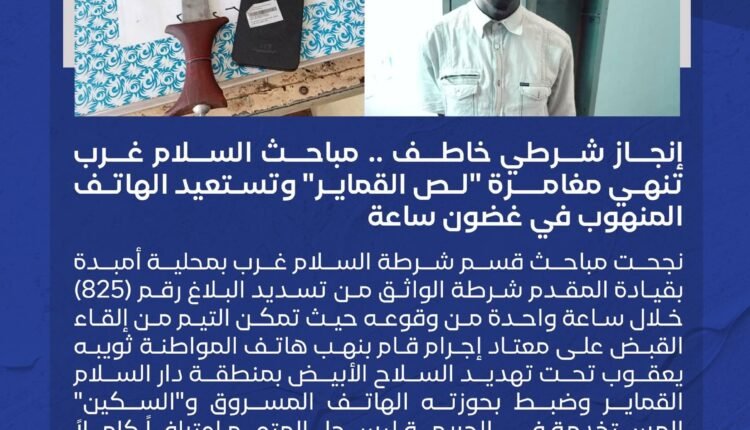 تمكنت مباحث قسم شرطة السلام غرب بمحلية أمبدة بقيادة المقدم شرطة الواثق من إعادة هاتف إحدى المواطنات بعد ساعة واحدة من سرقته