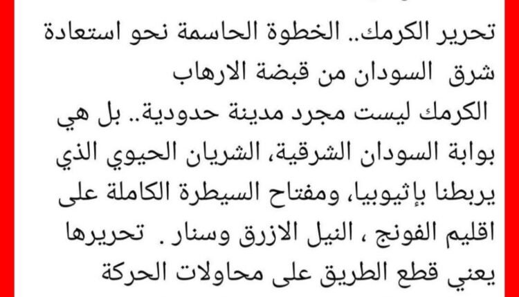 ■ بعد 39 عامًا من زيارة مولانا الميرغني لجلب سلاح من العراق لتحرير الكرمك، يأتي الشاب إبراهيم الميرغني، والذي يُعرّف بزوج تسابيح أكثر من تعريفه بأي صفة سياسية، ليتقيأ على تاريخ الاتحاديين بكلماته الساقطة التي سطرها اليوم مرحبًا فيها بما أسماه تحرير مدينة الكرمك على أيدي الجيش الإثيوبي!!