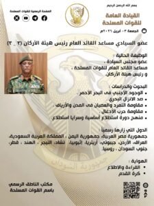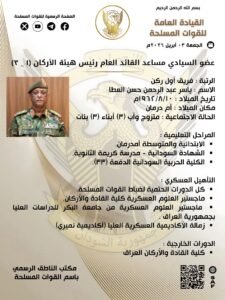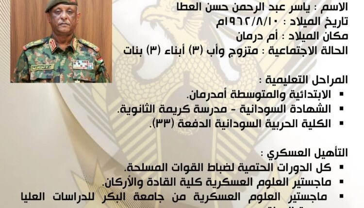 السيرة الذاتية لعضو مجلس السيادة مساعد القائد العام رئيس هيئة الأركان الفريق أول ركن ياسر العطا ..