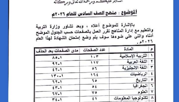 تربية الشمالية تحدد منهج الصف السادس للعام 2026م