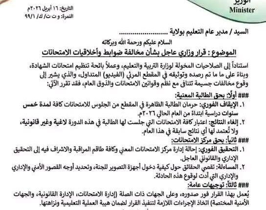 وأكدت الجهات المختصة عدم صدور أي قرار رسمي بهذا الشأن حتى الآن، مشددة على أن الإجراءات القانونية المتبعة هي المرجع الوحيد في مثل هذه القضايا، ومهيبةً بوسائل الإعلام ومستخدمي مواقع التواصل الاجتماعي تحري الدقة قبل تداول أو نشر مثل هذه المستندات المفبركة.