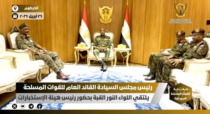 ولوحظ خلال اللقاء ارتداء اللواء النور القبة للبزة العسكرية للقوات المسلحة السودانية.