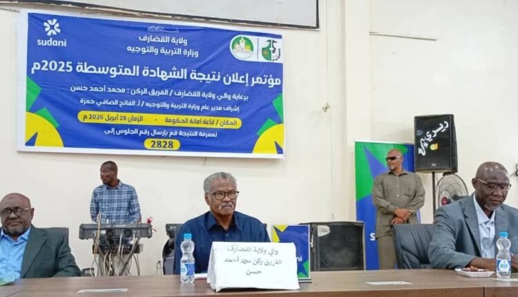 أعلنت حكومة ولاية القضارف، اليوم، نتيجة امتحانات الشهادة المتوسطة للعام 2025م، حيث بلغت نسبة النجاح العامة (70.8%)، من جملة (27,270) طالباً وطالبة جلسوا للامتحانات.
