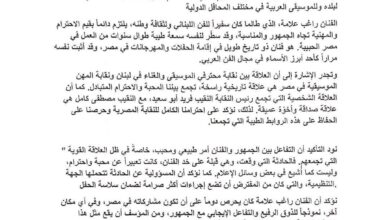 نقابة الموسيقيين اللبنانيين توضّح ملابسات حادثة راغب علامة في مصر